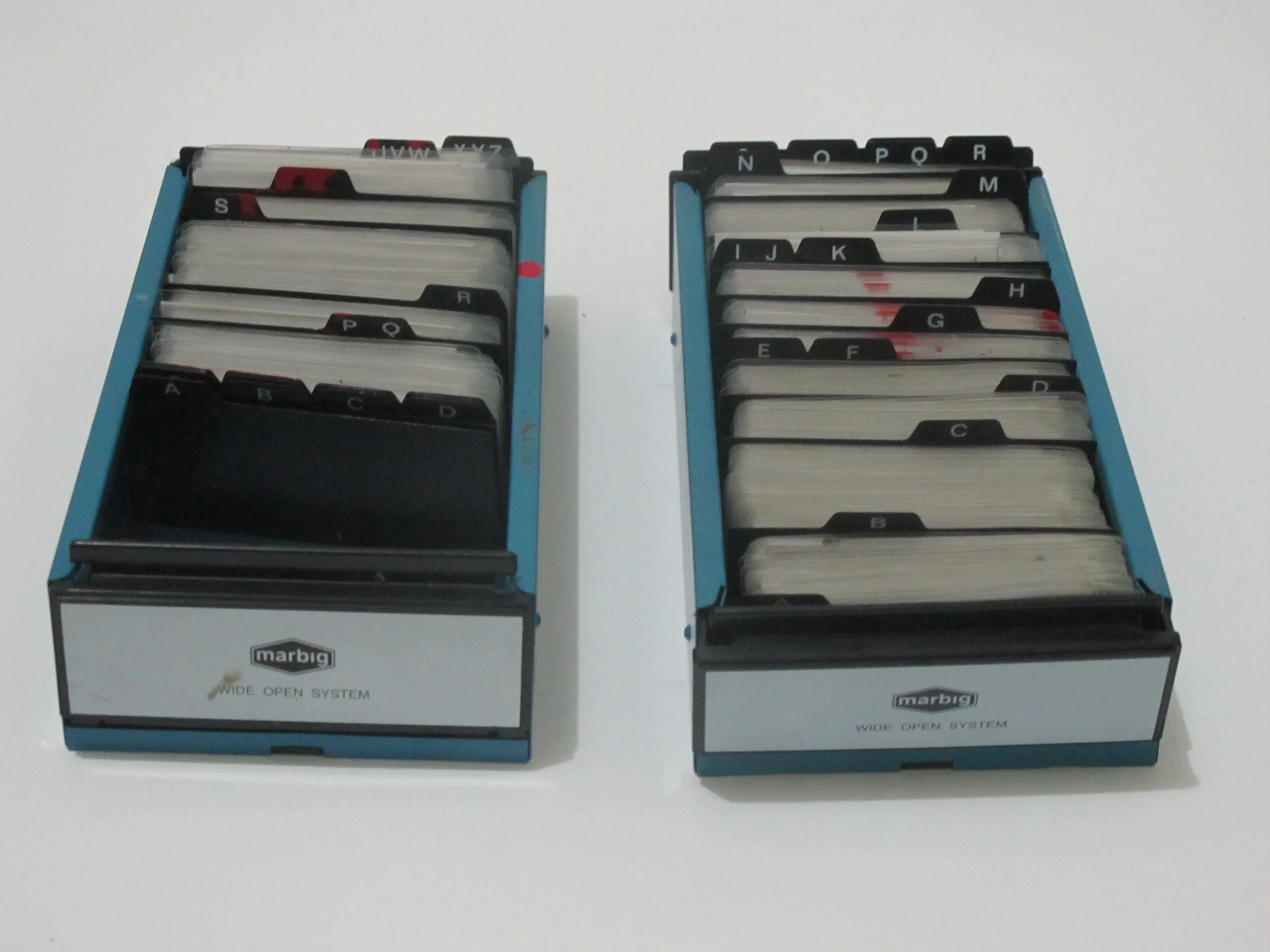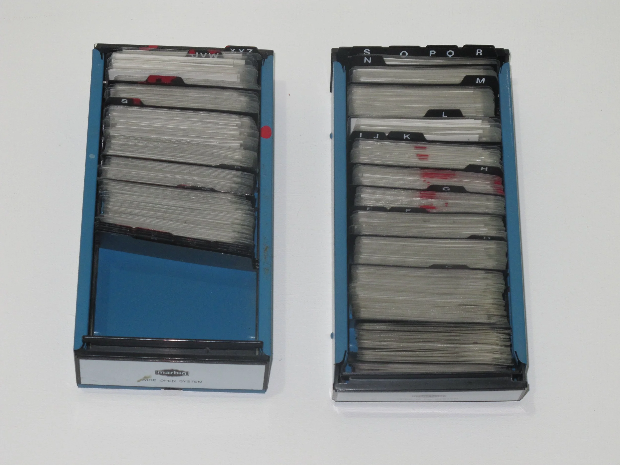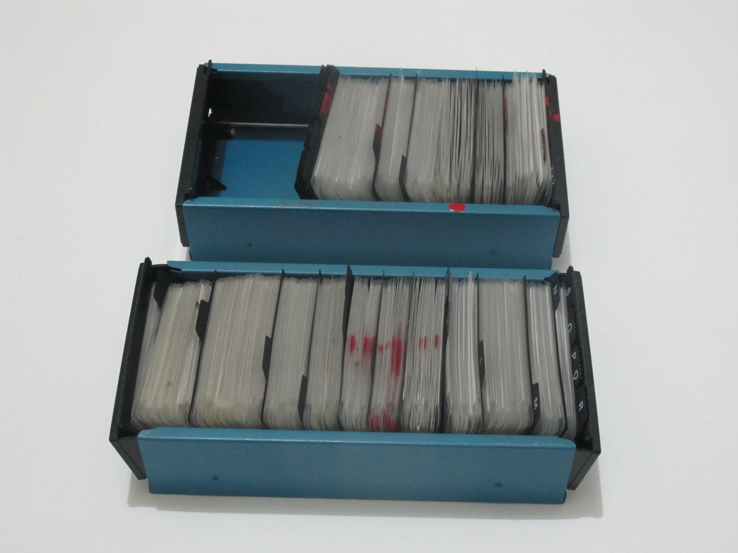 Approximately 1000 cards; 2 holders each approx. 6 × 10 × 20 cm.