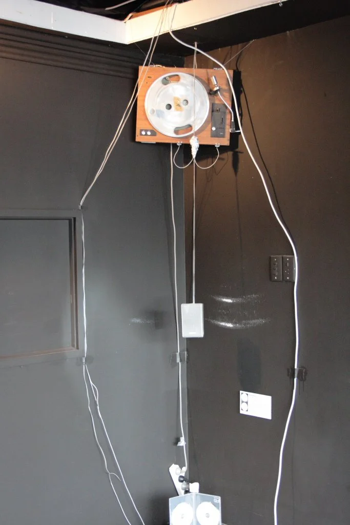 The physical structure of the work came together in an equally improvised way. I had no background in electronics, so the gallery director, Greg Shapley, after I explained the concept, kindly helped me wire the circuit. It was a simple open loop - one that would close whenever a metal contact brushed against another. With thanks to Greg, it felt like the perfect translation of thought into form.